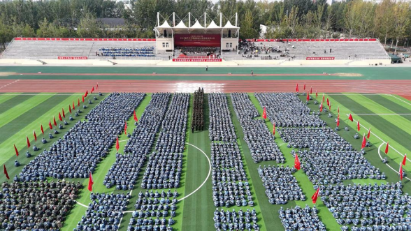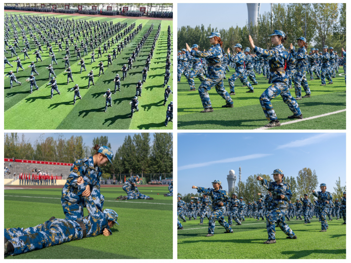 9月29日上午,学院在体育场举行了主题为“深化大中小学国防教育一体化建设 锻造跨学段爱国强军育才坚实根基”——2025级学生军训成果展示暨总结表彰大会。天津市委宣传部宣教处(全民国防教育处)处长郝丹丹,天津市教委体美劳处四级调研员齐双一,中国人民武装警察部队天津市总队机动支队少校大队长武海龙,宝坻区周良街初级中学100余名师生,2025级部分学生家长代表受邀参加;学院领导任碧云、梁海龙、李晓鹏、杜展鹏、陈明明、白晓、时憧宇、郭鑫、赵梦蝶出席,军训团各部门负责人、各教学单位负责人、各二级学院学生工作办公室主任、辅导员老师们和4000余名参训新生参加。学院副院长李晓鹏主持大会。