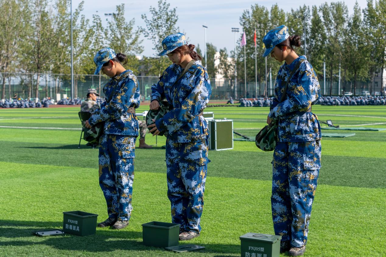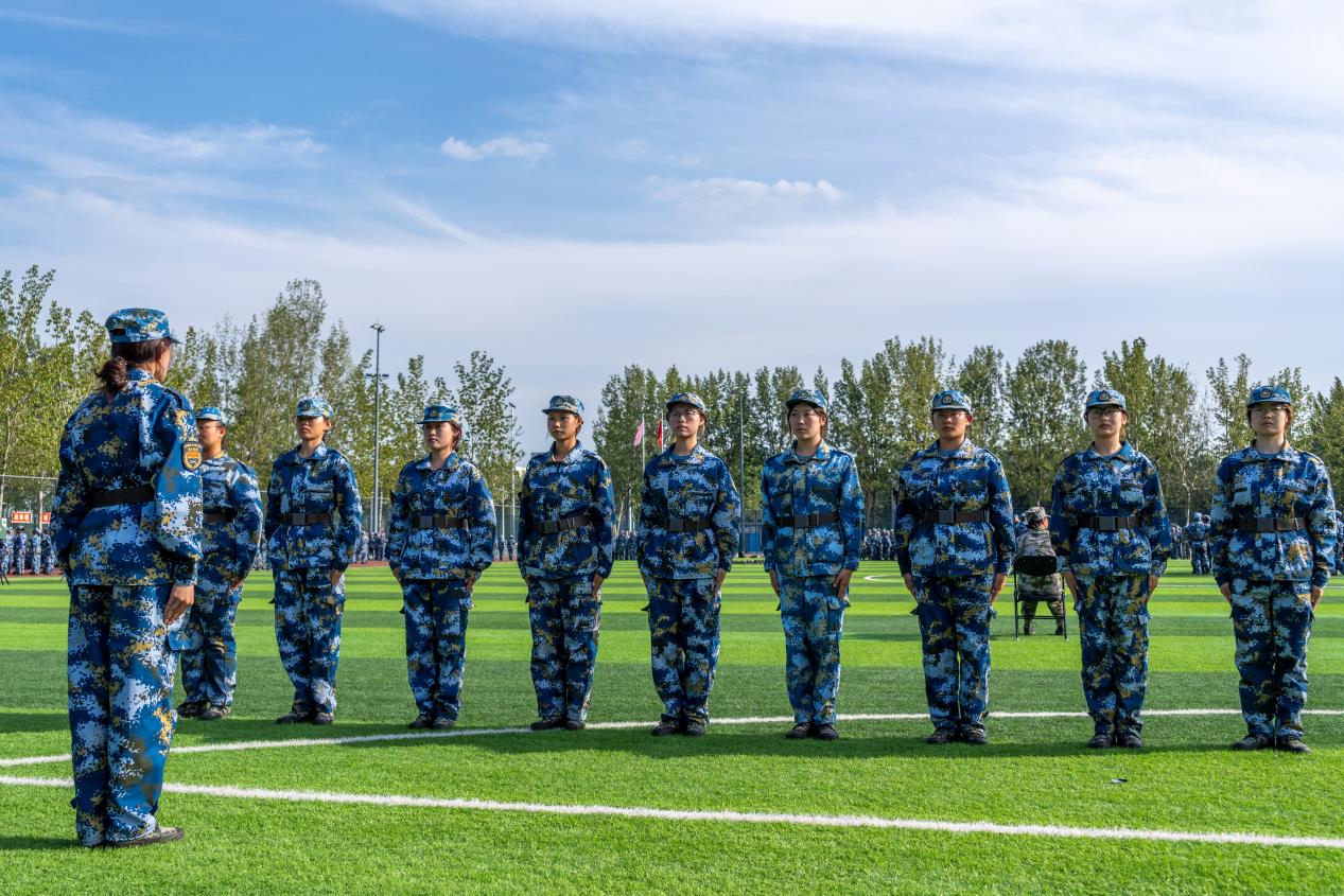 巾帼英姿不惧骄阳,少年意气笑对炙烤。比武场上,学子们双脚并拢稳如山,目视前方锐如炬。整齐的仪表彰显军人风貌,蓬勃的精气神诠释着青春最美的模样。