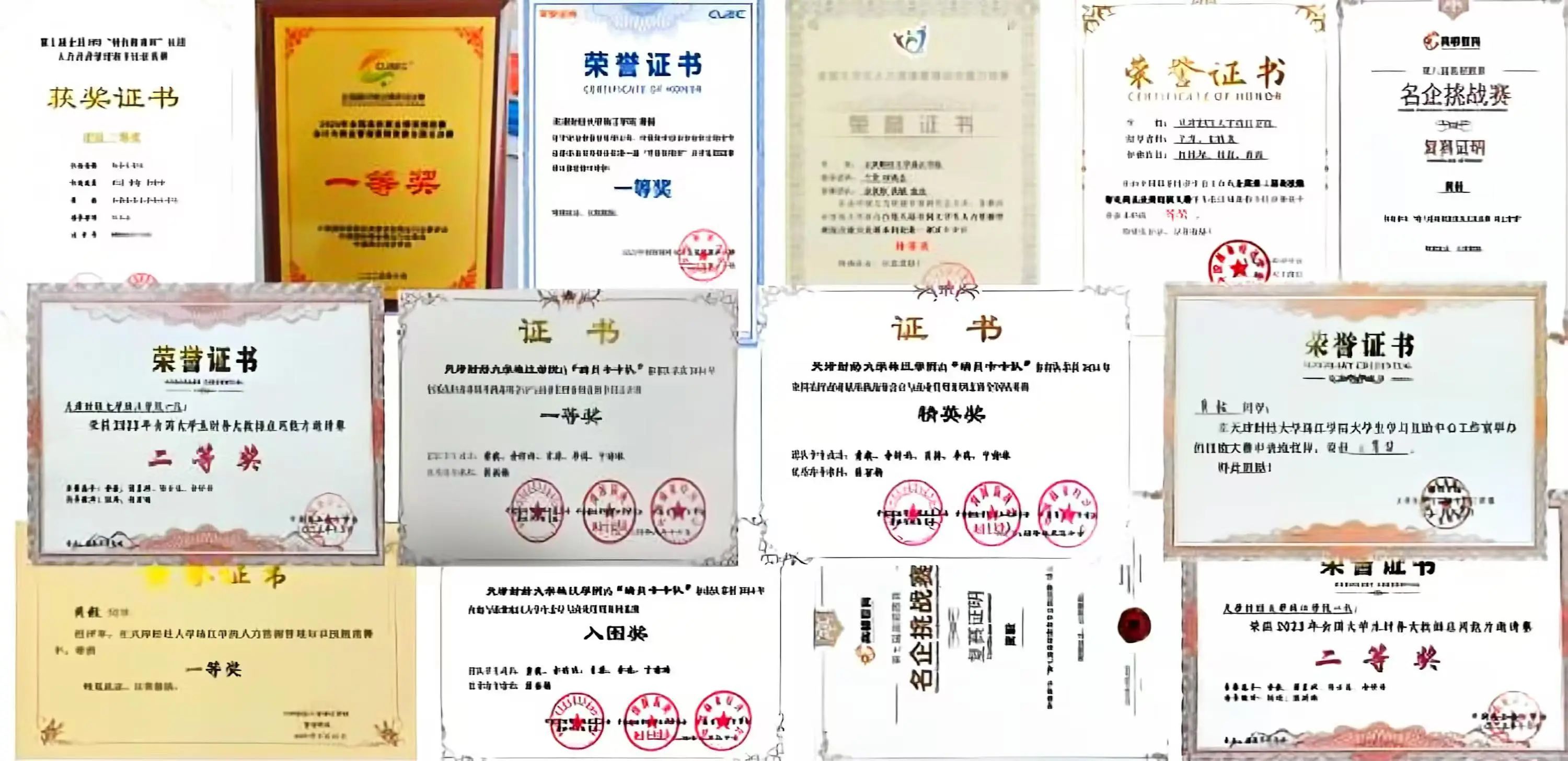 在学习方面,黄毅同学刻苦勤勉与态度认真。他不仅在本专业的学习上取得了显著成就,获得了一等奖学金、单科奖学金等荣誉,还成功考取了金融风险管理师证书以及英语四六级证书,并被评为了三好学生。除此之外他还积极参与学术竞赛,在与团队成员积极配合以及老师的指导下,他们的团队获得了国家级荣誉5项、省市级荣誉4项以及校级荣誉3项,其中包括全国普通高校学科竞赛排行榜中的全国一等奖等重量级奖项。这些荣誉不仅是对他个人能力的认可,更是他团队合作精神的体现。