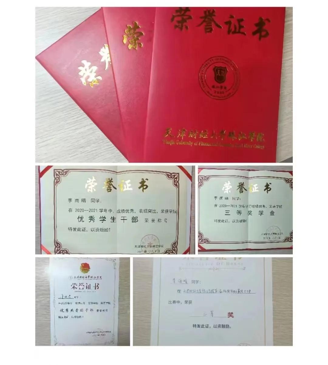 2020-2021学年中,荣获天津市优秀学生荣誉称号