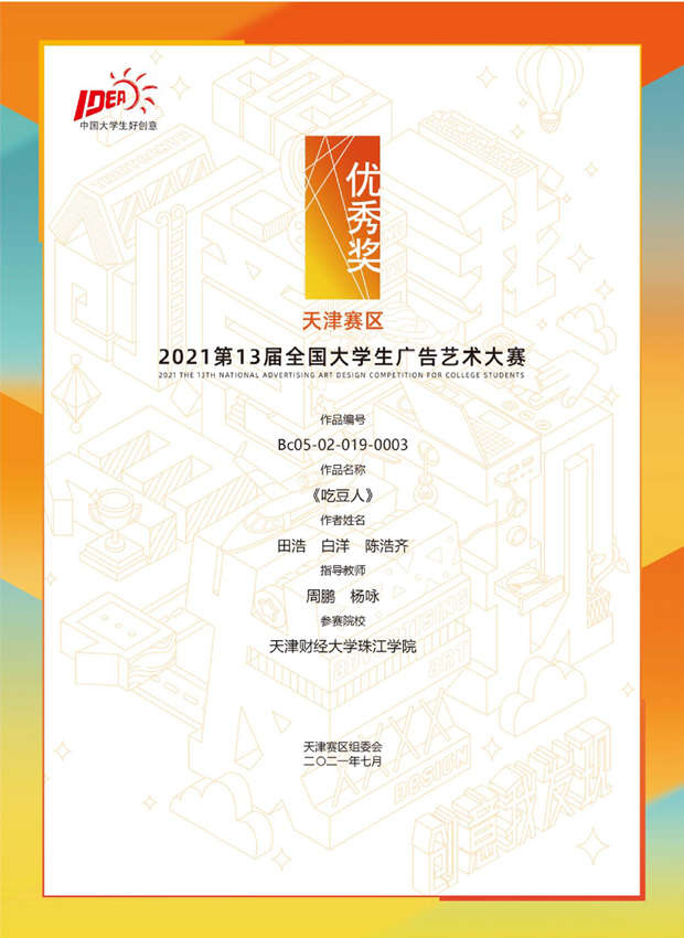 第13届全国大学生广告艺术大赛省部级优秀奖2