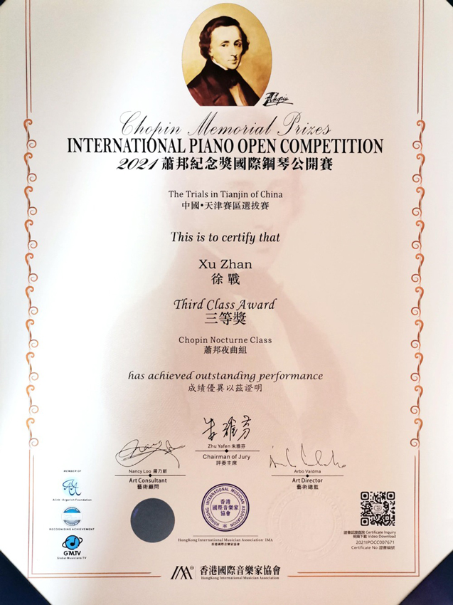 2021肖邦纪念奖国际钢琴公开赛天津赛区三等奖2