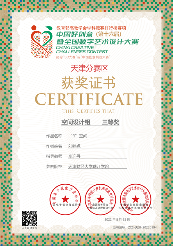 第十六届中国好创意暨全国数字艺术设计大赛国家级天津赛区三等奖