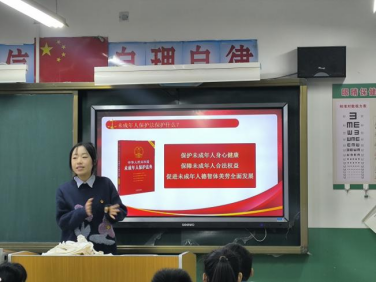 在集中实践学习后,团队结合实践学习收获,围绕法治理论宣讲、法律知识普及等内容,以走访中小学的形式开展主题宣讲。12月20日,艺术学院党总支书记、学工办主任陈绍生和学生党支部王琳维老师带领艺术学院“远方实践团”来到大唐庄镇初级中学开展了志愿服务。