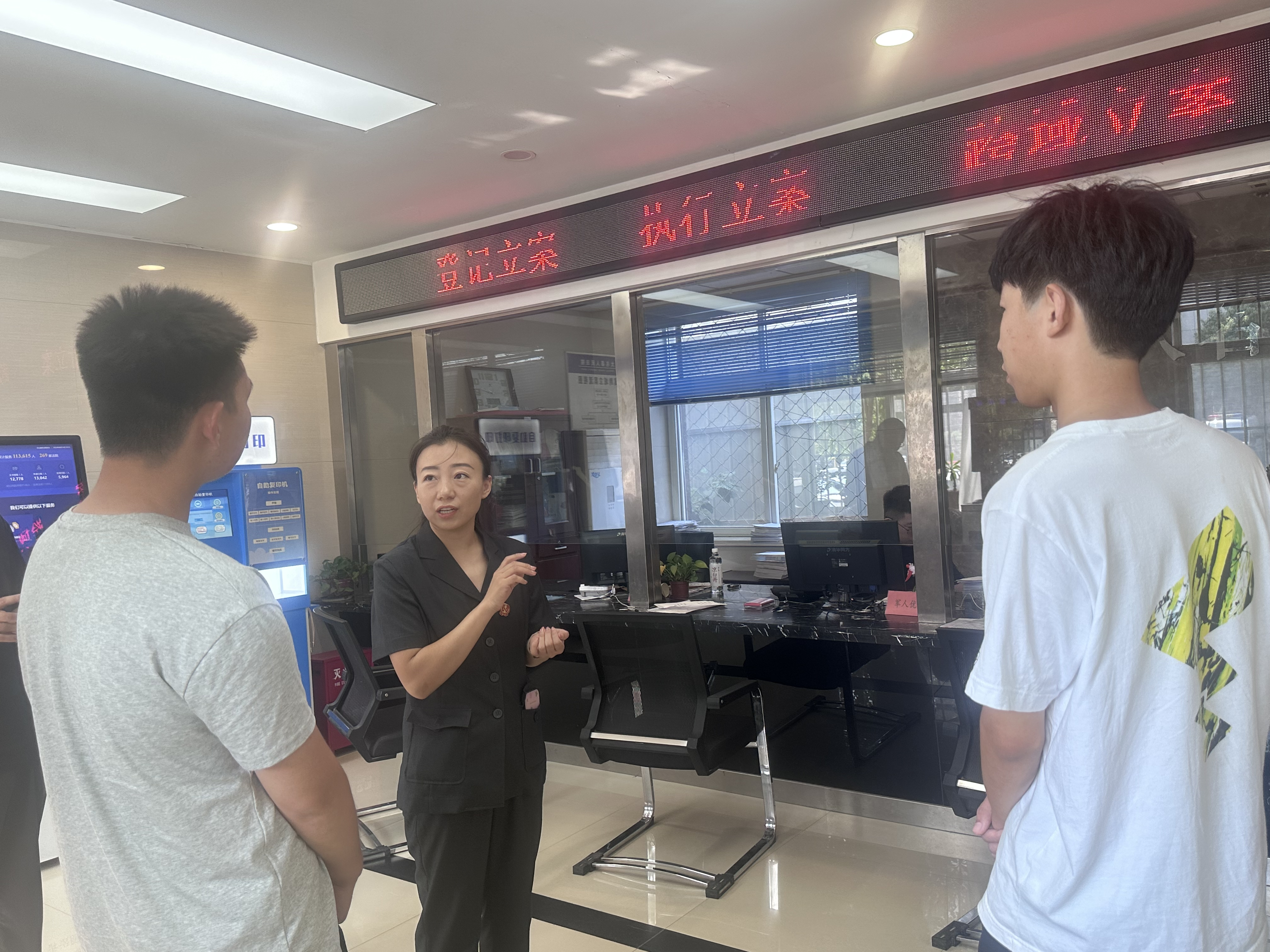 实践团成员们来到法院信访接待处,了解了涉法涉诉信访接待程序。群众工作无小事,作为信访接待人员,做到事事为群众考虑,获得来访群众的信任,要把坚定树立为人民群众排忧解难的根本宗旨。