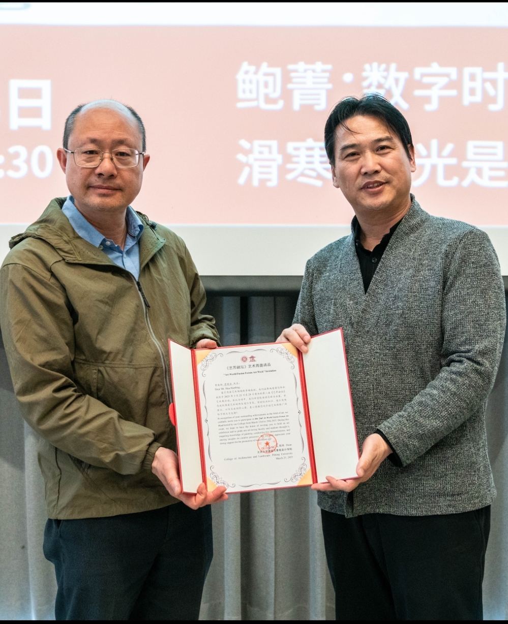 在AI技术与艺术深度融合的时代浪潮中,北京大学建筑与景观设计学院秉承“跨界创新·知行合一”的教育理念,于3月23日至30日举办第二届“艺界融坛”艺术周活动。艺术学院滑寒冰教授受邀参加北京大学“艺界融坛”艺术周活动。主办方李迪华副院长强调,北大始终秉持“以美育人”的理念,艺术周活动是学院推动艺术与学术融合的实践,并亲自向滑寒冰教授颁发学术讲座与办展邀请函。随后滑寒冰教授发表主题演讲“光是彩的生命,彩是画的灵魂”。结合展出的作品来深刻诠释演讲的主题,并做现场示范分析画面光与彩的构成。将作品《阳光下的街道》赠与北大永久收藏。讲座互动热烈,现场解答北大研究生、艺术家、水彩画爱好者存在的疑惑,对现场观众不仅是一次知识的盛宴,更是一次艺术的洗礼。