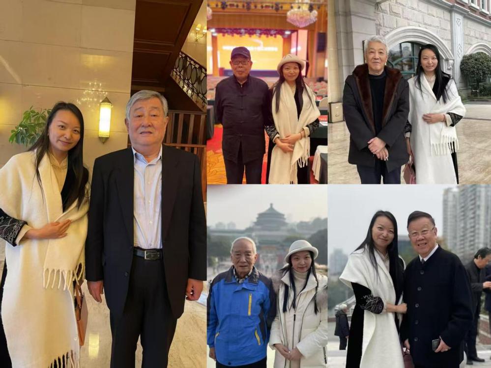 戴雨桐与诸位词作家的合影(左1:《在希望的田野上》陈晓光;右上1:《你是这样的人》宋小明;右上2:《沂蒙山》王晓岭;右下1:《乌苏里船歌》胡小石;右下2:《你是这样的人》瞿琮)