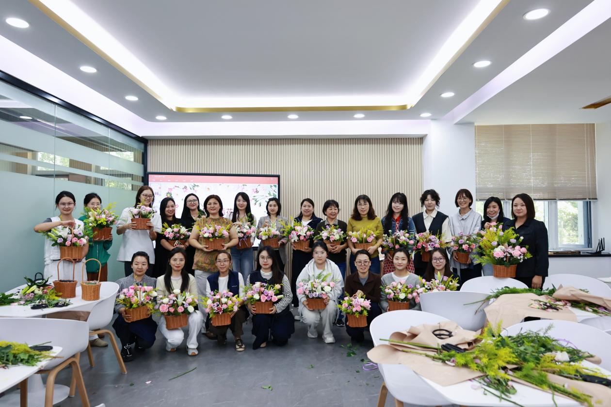 活动特邀专业花艺讲师进行现场指导。讲师从花材选择、色彩搭配、造型技巧等方面深入浅出地进行了讲解,巧妙地将插花艺术的美学理念与育人匠心融合,引导老师们通过修剪枝叶、构思布局感悟教育的智慧与艺术。