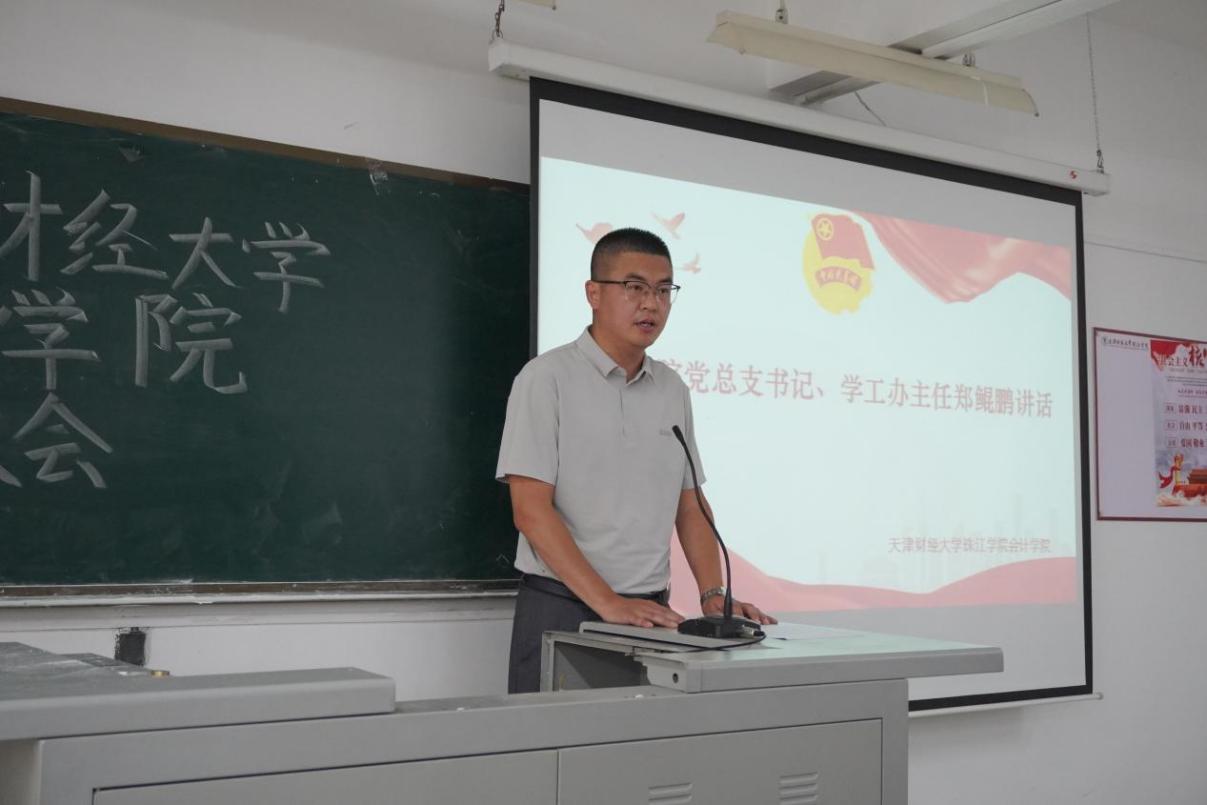 管理学院党总支书记郑鲲鹏发表讲话,他指出团委要充分发挥党的助手和后备军的作用,要重点培养会计学院新一届团委学生干部这一中坚力量,充分发挥好他们的组织协调能力、创新担当能力和团结引领能力,在推动团建工作取得更好成效的同时,助力学院各项事业的发展。