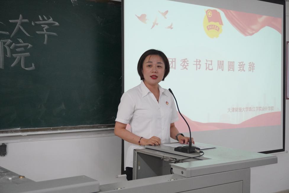 学院团委书记周圆,管理学院党总支书记、管理学院学工办主任郑鲲鹏,管理学院党总支纪委委员、会计学院学工办主任毕玉,会计学院辅导员王冰,管理学院辅导员孙怡和团员代表共计81人参加会议。
