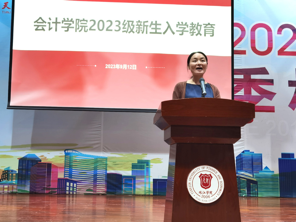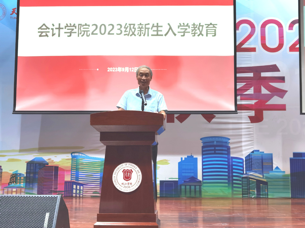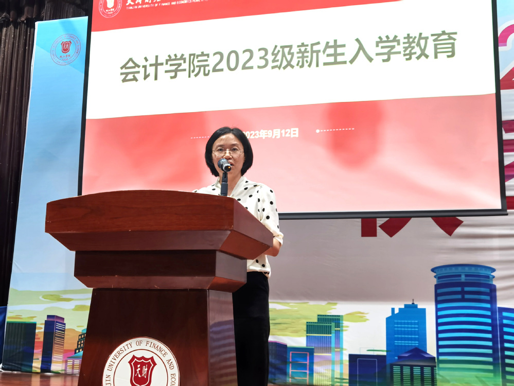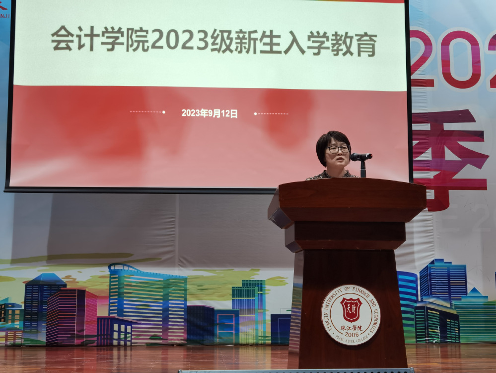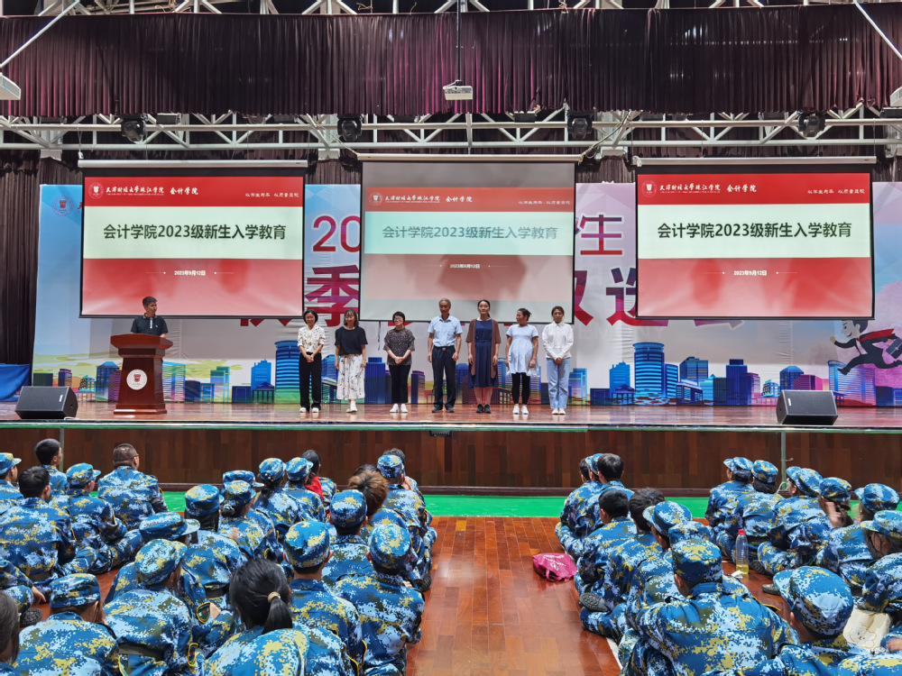 为切实做好2023级新生入学教育工作,落实立德树人根本任务,帮助新生更好地融入新的学习和生活环境,9月12日晚7点,会计学院在体育馆召开新生入学教育大会。会计学院院长韩传模、副院长徐立文、会计学系副主任冯怡,财务管理系副主任汪蕾、审计学系副主任汤小芳、教师代表陈益云、学院办公室主任杨璐、学工办辅导员李程霏参加入学教育。副院长徐立文主持入学教育。
