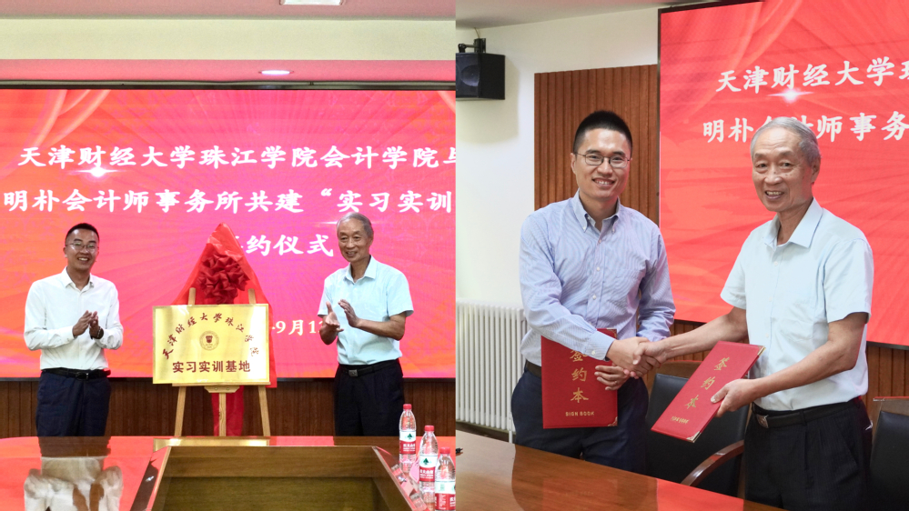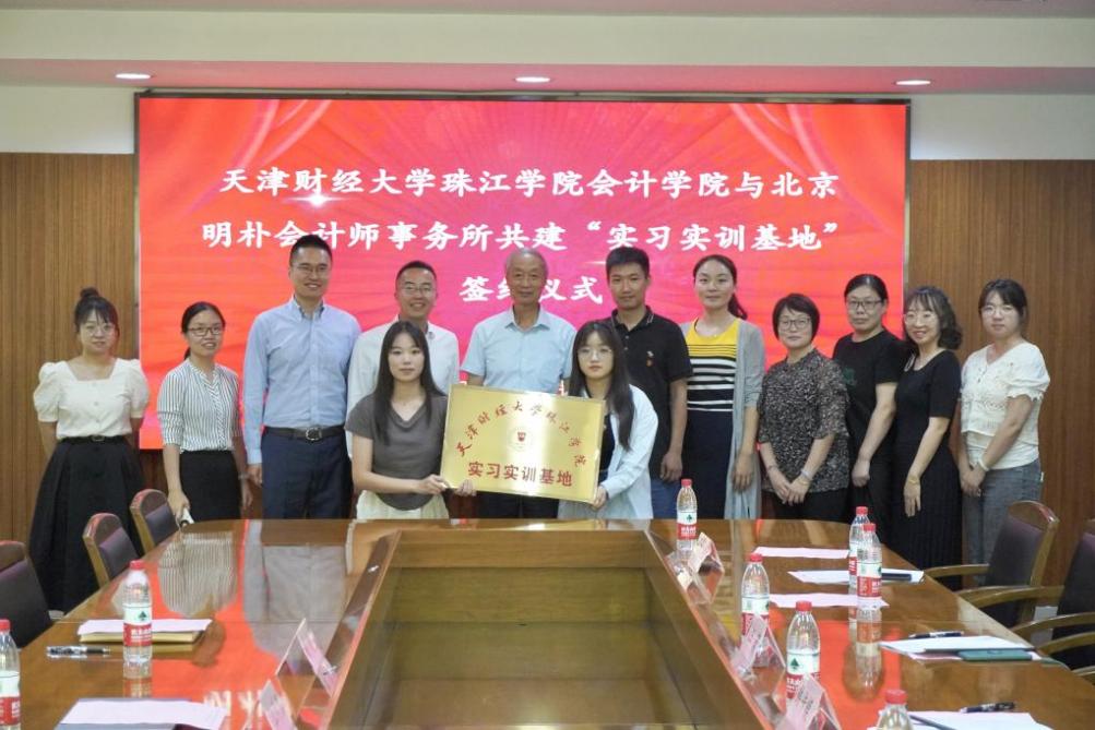 北京明朴会计师事务所江列银先生、董菁华先生分别对事务所的人员情况、业务范围、经济形势及行业形势等进行了详细的介绍。江列银先生表示,希望通过共建实习实训基地,探索校企合作的新领域、新途径。会计学院院长韩传模与北京明朴会计师事务所董菁华先生共同签署“实习实训基地”协议并揭牌。