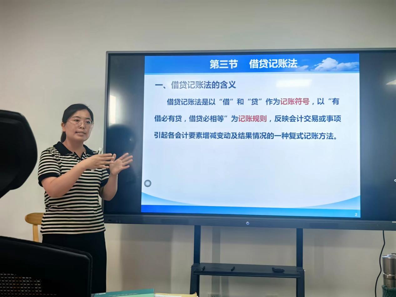 左春芳副教授结合本课程的知识、能力、素质目标提出本次授课的学习要求,分别从记账符号、账户结构、记账规则以及会计分录书写要求四个方面进行讲解。陈益云教授从借贷记账法的定义和我国会计发展史入手,介绍借贷记账法下如何理解“借”和“贷”作为记账符号记录资金运动的“来龙去脉”,融入课程思政元素,增强文化自信。张娜副教授结合借贷记账符号与账户结构的关系,归纳各类账户结构特点,最后总结会计对象、会计要素、会计科目与账户之间联系。