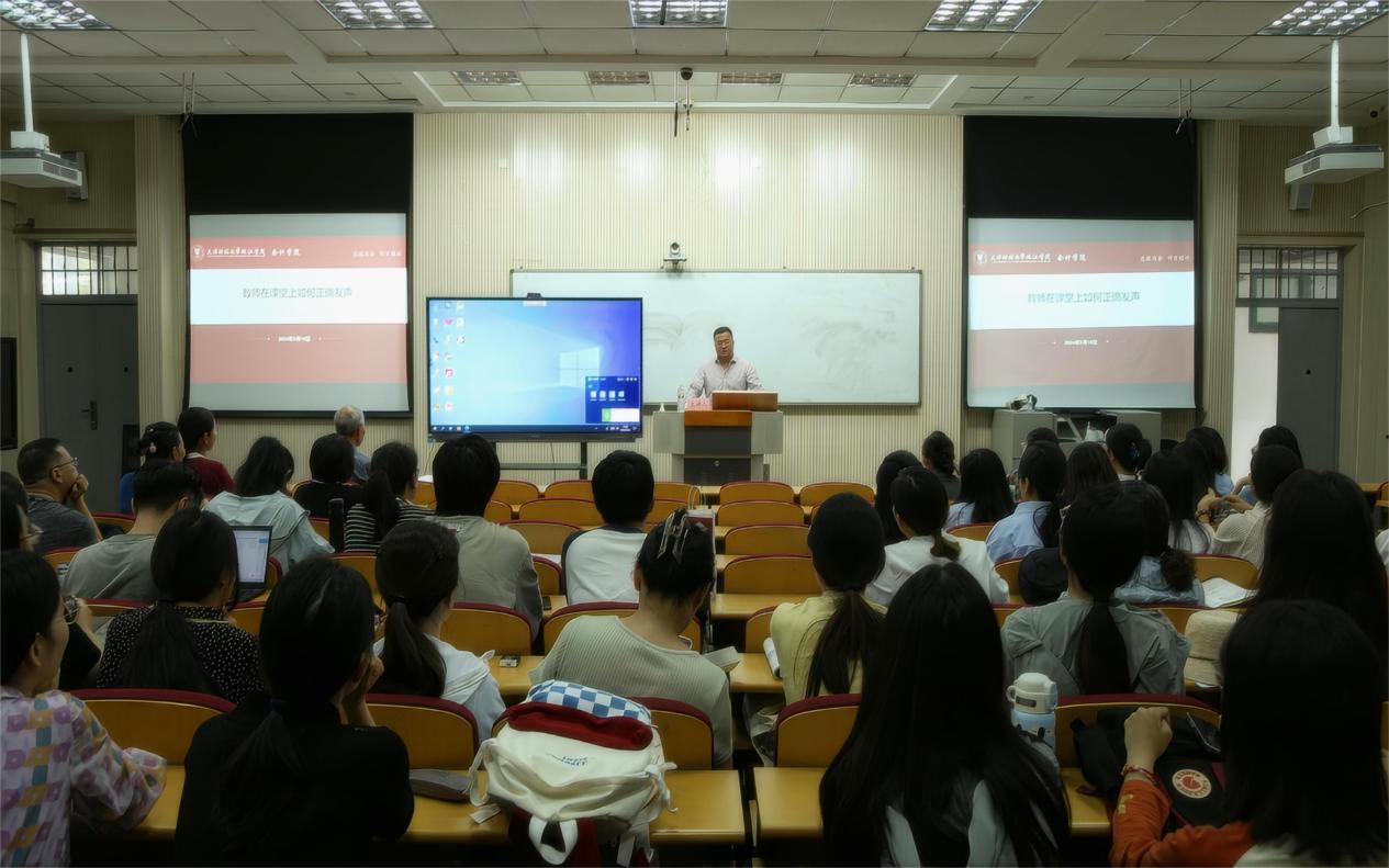 “工欲善其事,必先利其器”。为帮助教师在工作中合理用嗓,科学护嗓,9月18日下午,会计学院邀请艺术学院副院长曹鹏飞开展“教师在课堂上如何正确发声”专题讲座讲座。会计学院院长韩传模、副院长徐立文、院长助理汪蕾及学院全体教师参加,讲座由院长助理汪蕾主持。