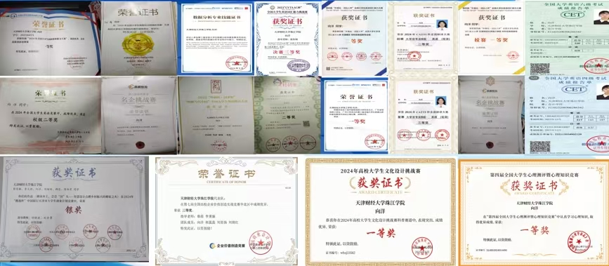 在校期间,她深耕专业领域学习,连续两年获得一等奖学金和单科奖学金,获得2023-2024三好学生荣誉称号,并且已517分考取英语四级证书和520分考取英语六级证书,并多次参加校级市级和国家级比赛,代表学院参加中国国际大学生创新大赛(互联网+)获得校赛金奖,天津市赛铜奖,以及2024年挑战杯天津市大学生创业计划竞赛市赛银奖,以及为了得到自我提升参与并获奖的四项各类校级奖项。此外,她一直都知道自律和上进的重要性,假期也在不断地学习,充实自己。