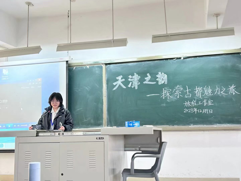 为了提高自身能力和积累经验,她刚入学便加入了旅程工作室,期间多次参加校内外大型竞赛,在工作室中通过与大家友好的沟通交流,她不仅获得了很多比赛奖项还收获了最纯粹的友谊。在担任秘书部主席后,她也积极带领着工作室的小伙伴参加各种大型比赛,其中就有互联网+,挑战杯还有全国市场营销大赛等,并且都获得了天津市级以上的奖项。此外,为了给即将备考四六级的学弟学妹传授经验,她也受邀作为会计学院学子讲坛主讲人分享四六级备考经验。
